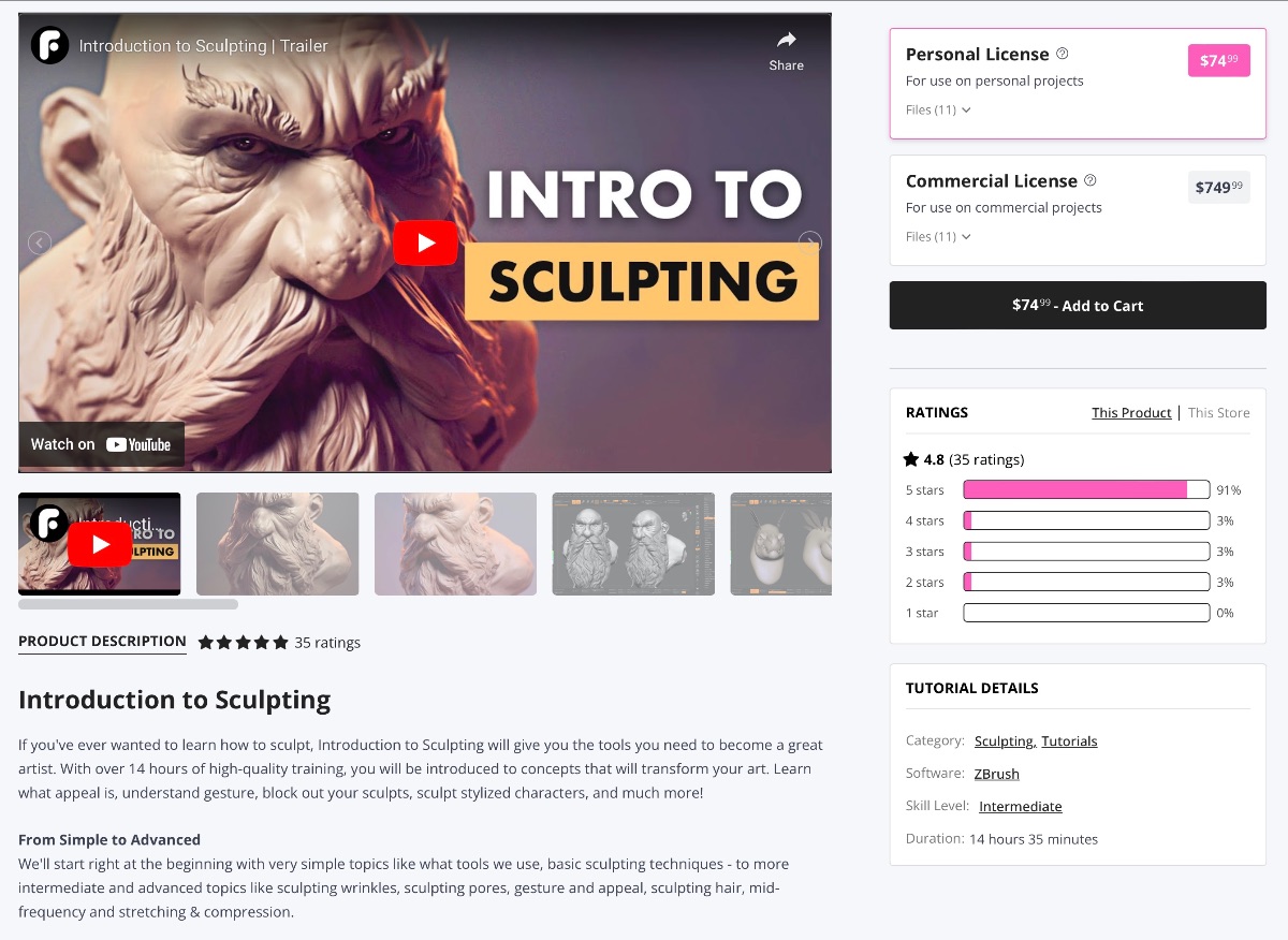 Individual product ratings will still be prominently displayed as well. You can find these on the individual product pages. Here's an example from our tutorial Introduction to Sculpting.